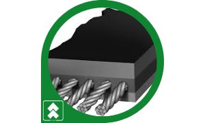 Contiene propiedades físico-químicas que minimizan las deformaciones en la cubierta en contacto directo con el transportador, reduciendo los esfuerzos de fricción en los rodillos, buscando minimizar costos por consumo energético en instalaciones de larga extensión. Anchos disponibles de 20” a 102”